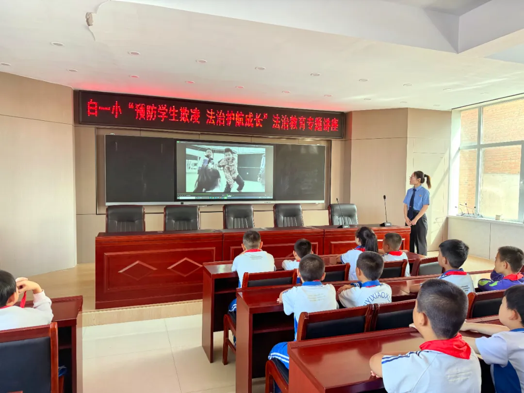 为进一步增强学生的法治观念,提升学生自护能力,切实筑牢校园安全防线,护航未成年人健康成长,9月16日,察右后旗检察院晨曦未检工作人员走进白镇第一小学,开展了以“预防校园欺凌 法治护航成长”为主题的法治宣讲活动。