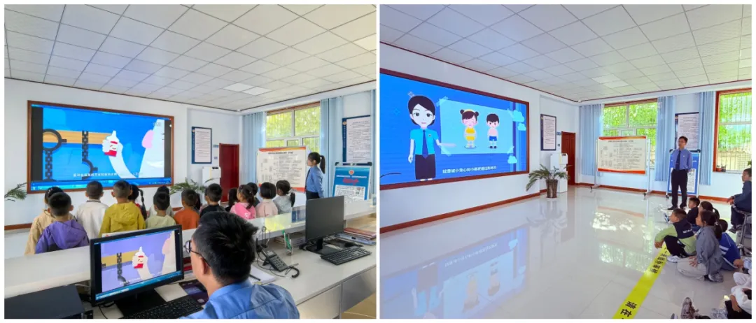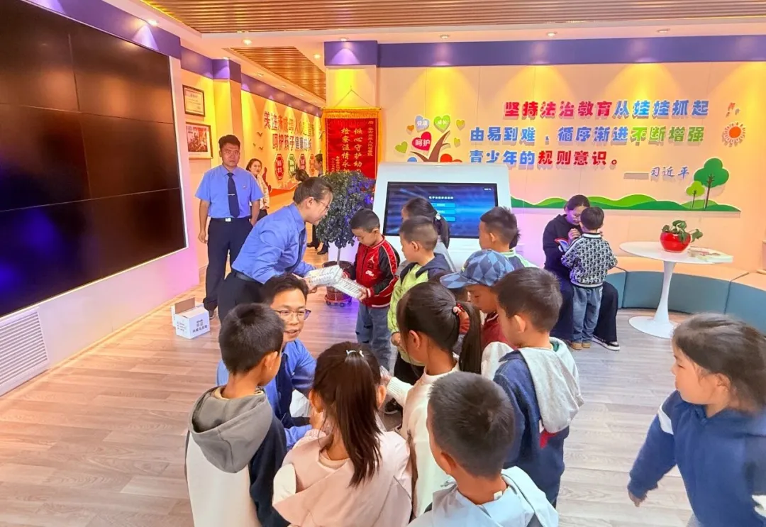 在检察职能讲解区,未检工作人员借助生动的动画短片,用“小朋友能看懂”的语言,逐一介绍检察院各部门的工作职能,将“检察院是干什么的”转化为“保护小朋友不被欺负”“帮大家解决困难”等通俗表达,让孩子们对检察工作建立初步认知。