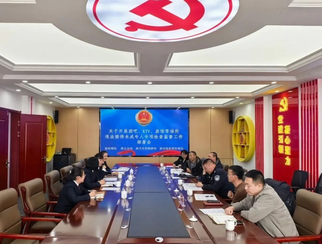 为切实筑牢未成年人保护防线,严厉整治酒吧、KTV、旅馆等场所违法接待未成年人乱象,近日,察右后旗人民检察院牵头,联合旗市场监督管理局、公安局、文旅局召开违法接待未成年人专项检查监督工作部署会,并讨论短租房、日租房等新业态监管举措,凝聚监管合力,筑牢未成年人保护屏障。部署会明确,专项检查将聚焦重点场所,严格核查未成年人禁入标识设置、身份核验及强制报告制度落实等情况,严厉打击违规接纳未成年人行为,压实经营者主体责任,从源头防范侵害风险。同时,针对短租房、日租房等新业态,各部门围绕入住登记规范、安全隐患排查、监管职责划分等核心问题深入研讨,提出建立信息共享、联合执法的协同监管机制,填补监管空白。