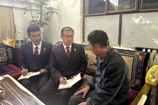 今年7月19日,王国栋(中)与西藏检察同仁一起到社区矫正对象家中实地走访了解情况。